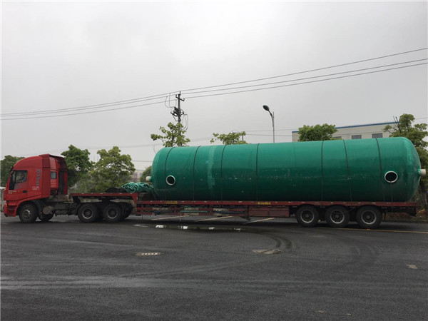 本公司生產的機械纏繞玻璃鋼化糞池,外觀為圓桶型設計制作,桶內設有加強筋,兩端封頭為車輪型設計制作,抗壓強度高、耐酸堿腐蝕,正常使用壽命可達50年以上。 玻璃鋼化糞池內部設有隔板,隔板上的過水孔上下錯位,形成旋流,避免了短路,延長了污水的實際停留時間;同時, 隔板將整個罐體分成多個部分:包括多級生化室、澄清室等,生化室內部裝有“生物填料”,填料上附有大量的微生物,從而使污水與微生物的接觸面積和時間得到了極大的增加,大大提高了反應效率,使化糞池內的固體和液態有機物被去除,使污泥減量化、無害化, 處理出水達到國家規定的排放標準的三級、二級、一級或中水回用標準,為污水的后續深度處理奠定了基礎。